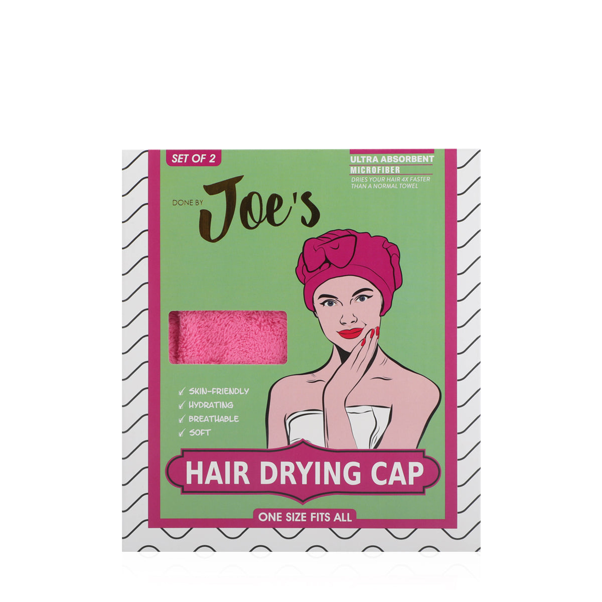 A set 2 soft, quick-drying hair drying caps made of highly absorbent microfiber material that dries hair 4X faster than traditional towels. Perfect for all types of hair and designed to minimize pulling and tugging to prevent hair fall while in its wet, vulnerable state.